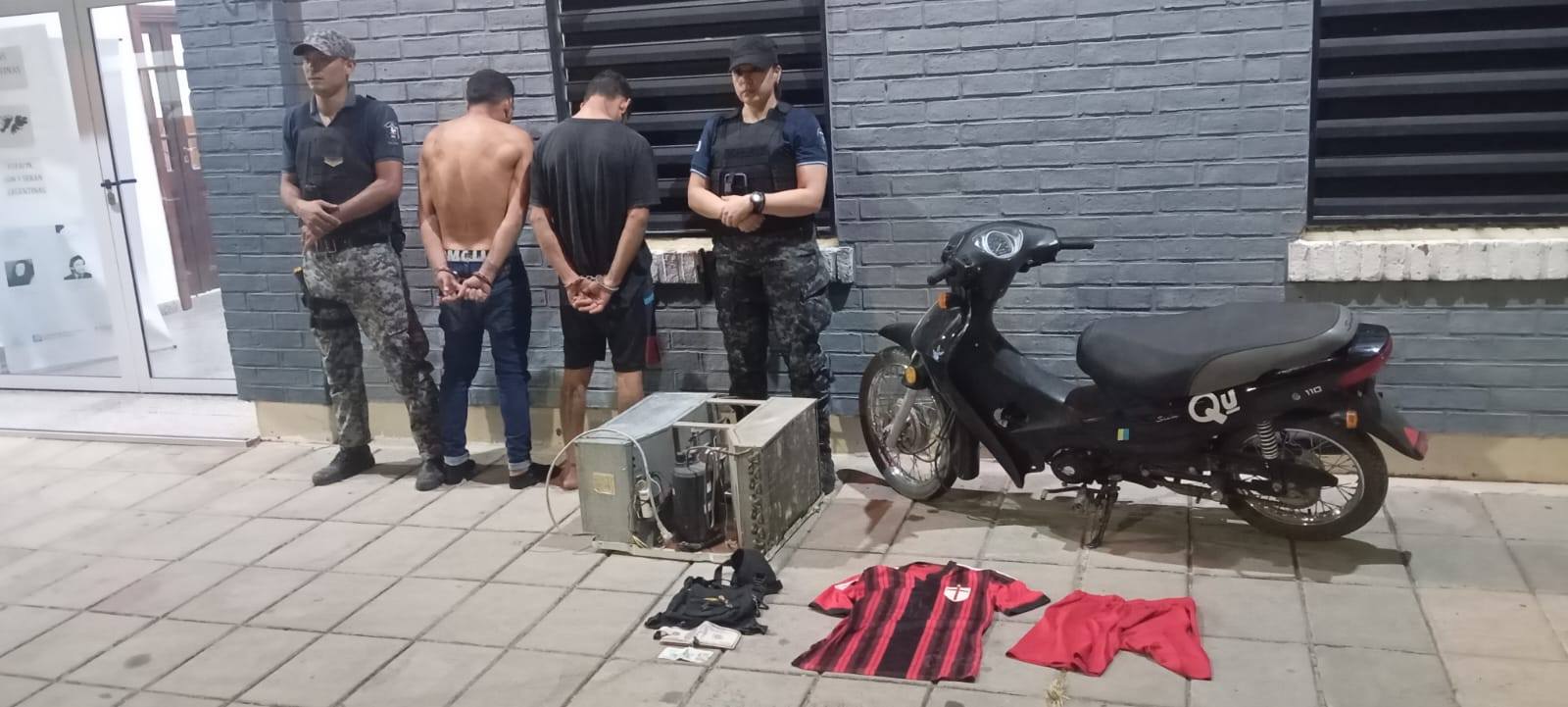 Según informaron fuentes policiales, al advertir la presencia del móvil, los individuos arrojaron el aire acondicionado e intentaron darse a la fuga, aunque fueron demorados a pocos metros del lugar.