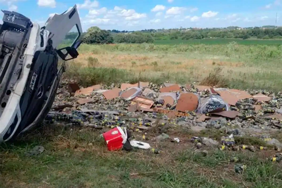 Uno de los aspectos que más llamó la atención tras el accidente fue la gran cantidad de botellas que quedaron esparcidas al costado de la calzada, producto del impacto entre los vehículos. Según trascendió, varias personas se aproximaron a la zona y retiraron parte de la mercadería caída del camión.