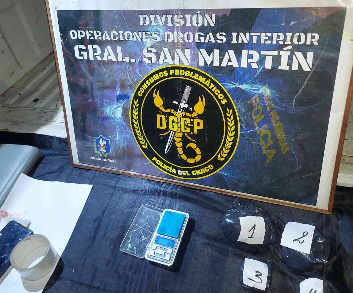 Tras las pruebas de campo y pesaje correspondiente, se confirmó que se trataba de cocaína, con un peso total de 463,2 gramos, distribuidos en distintos “bochones” y envoltorios de menor tamaño. Además, se secuestró un teléfono celular Samsung A23, dinero en efectivo y un boleto de viaje con destino a General San Martín.