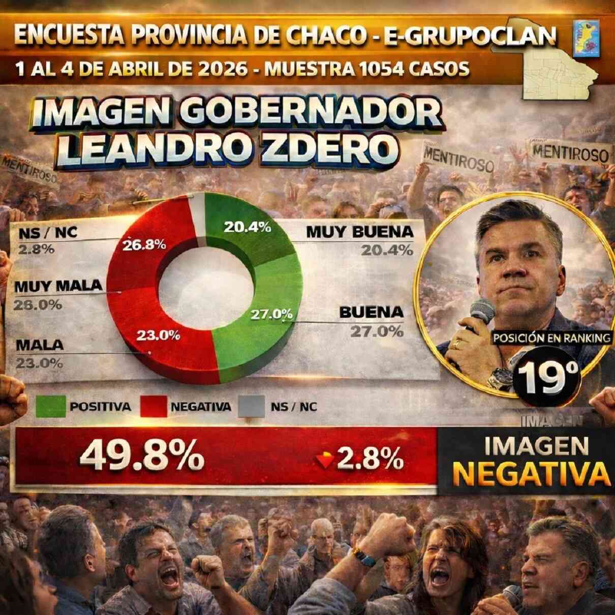El estudio fue realizado entre el 1 y el 4 de abril sobre una muestra de más de 24.600 casos a nivel país, lo que le otorga un grado significativo de representatividad. En ese marco, los resultados evidencian un cambio en la percepción ciudadana respecto a la gestión del gobernador chaqueño.