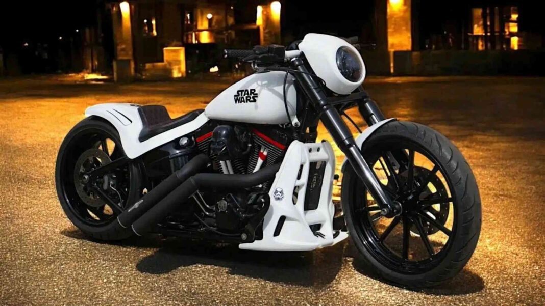 Es una imponente Harley-Davidson Softail Breakout inspirada en el universo de Star Wars